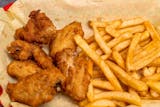 6 hand battered chicken breast tenders, fries, Texas toast and dipping sauce.