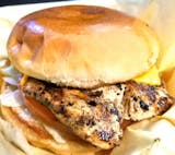 grilled chicken breast w/ grilled bell pepper , grilled onion, Swiss and provolone cheese.